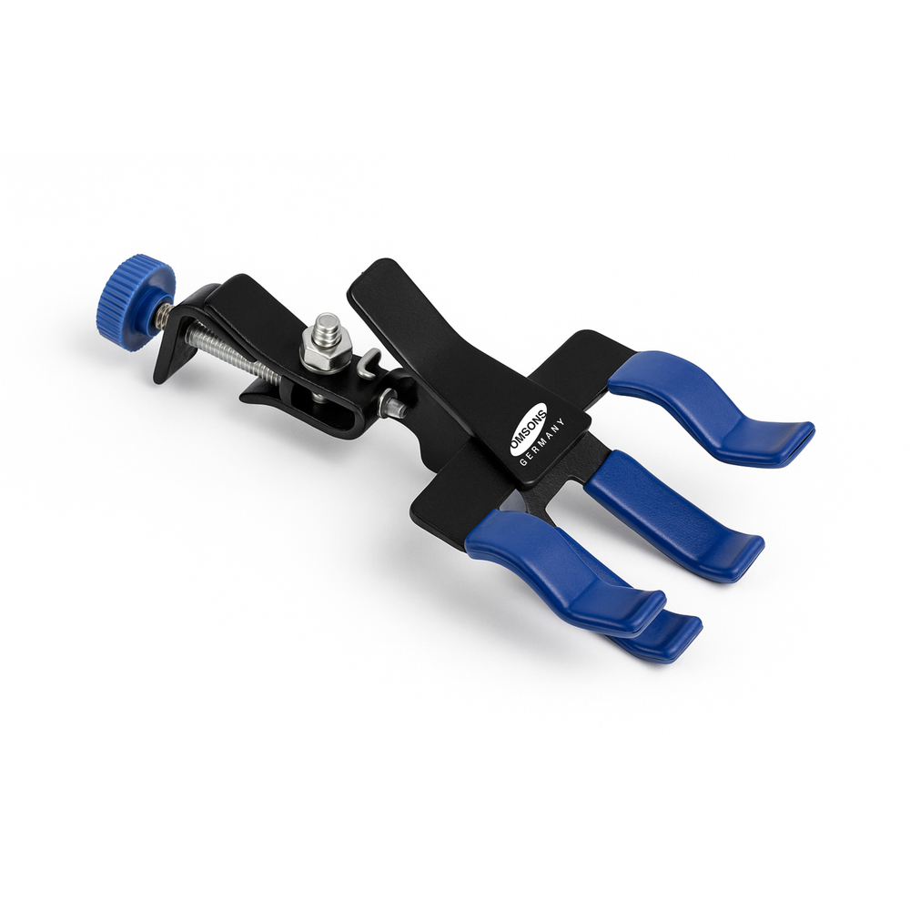 La abrazadera de bureta es un accesorio esencial para la sujeción estable y segura de una o dos buretas durante procesos analíticos como titulaciones, destilaciones o filtraciones. Fabricada en metal resistente (aluminio o aleación de zinc) con recubrimiento anticorrosivo, esta pinza cuenta con mandíbulas recubiertas en goma o plástico suave para proteger el vidrio contra roturas. Se ajusta fácilmente a varillas de soporte universal mediante tornillo, permitiendo trabajar en posición vertical con precisión. Su diseño doble permite sostener simultáneamente dos buretas de igual o distinto tamaño. Es reutilizable, duradera y compatible con la mayoría de los sistemas de montaje. Muy utilizada en laboratorios escolares, farmacéuticos, industriales y centros de investigación.