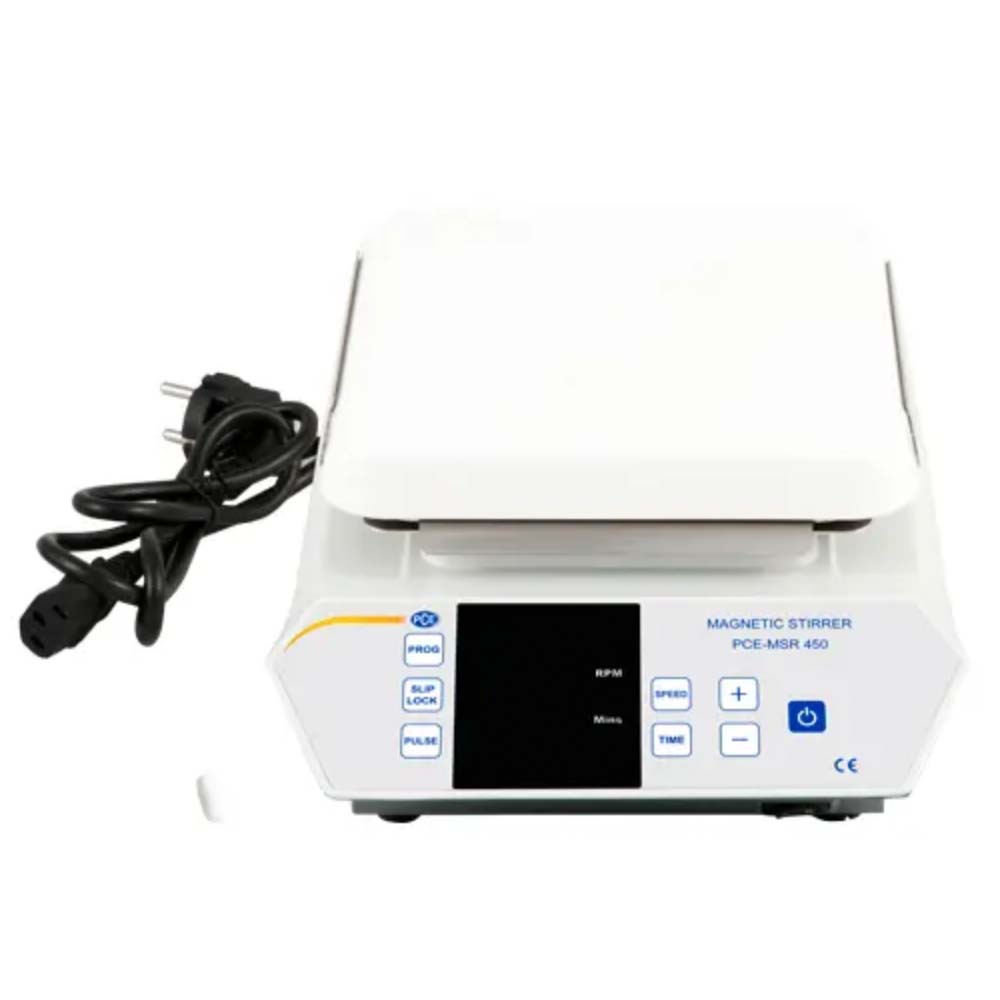 Dispositivo diseñado para agitar líquidos con volúmenes de hasta 20 litros. Ofrece una velocidad de agitación ajustable de 200 a 2200 rpm, configurable en incrementos de 10 rpm, incluso durante su funcionamiento. Incorpora un temporizador ajustable entre 1 y 999 minutos y permite operar en modo continuo o por impulsos, alternando el sentido de giro. Incluye un imán agitador de 25 mm y admite imanes de hasta 60 mm para volúmenes mayores. Su arranque suave y aumento progresivo de velocidad previenen salpicaduras.