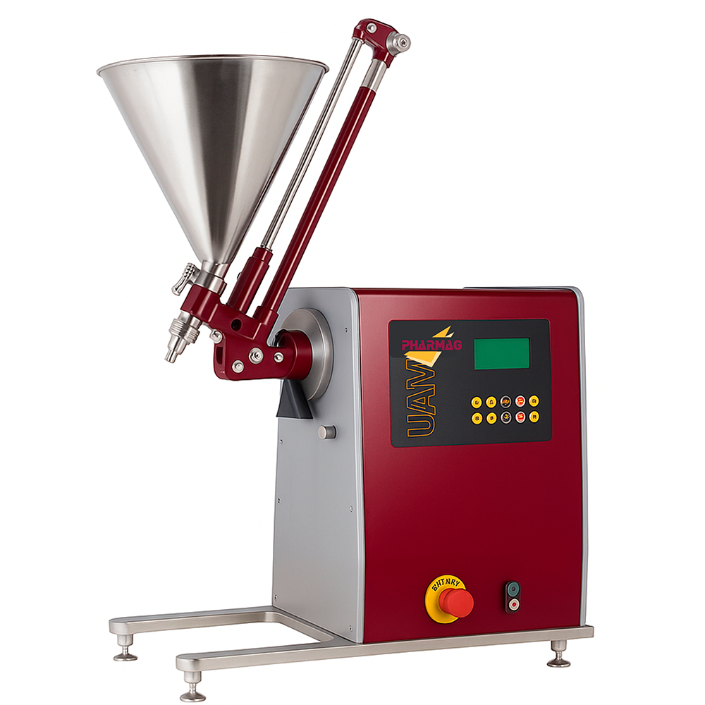 Es un aparato especializado en la dosificación y llenado de ungüentos, cremas y emulsiones farmacéuticas o cosméticas. Su diseño permite un llenado preciso y sin goteo de materiales viscosos en una amplia gama de envases, como tubos, frascos y botellas. Todas las partes en contacto con el producto cumplen con las normativas GMP y pueden ser esterilizadas según estas normativas.