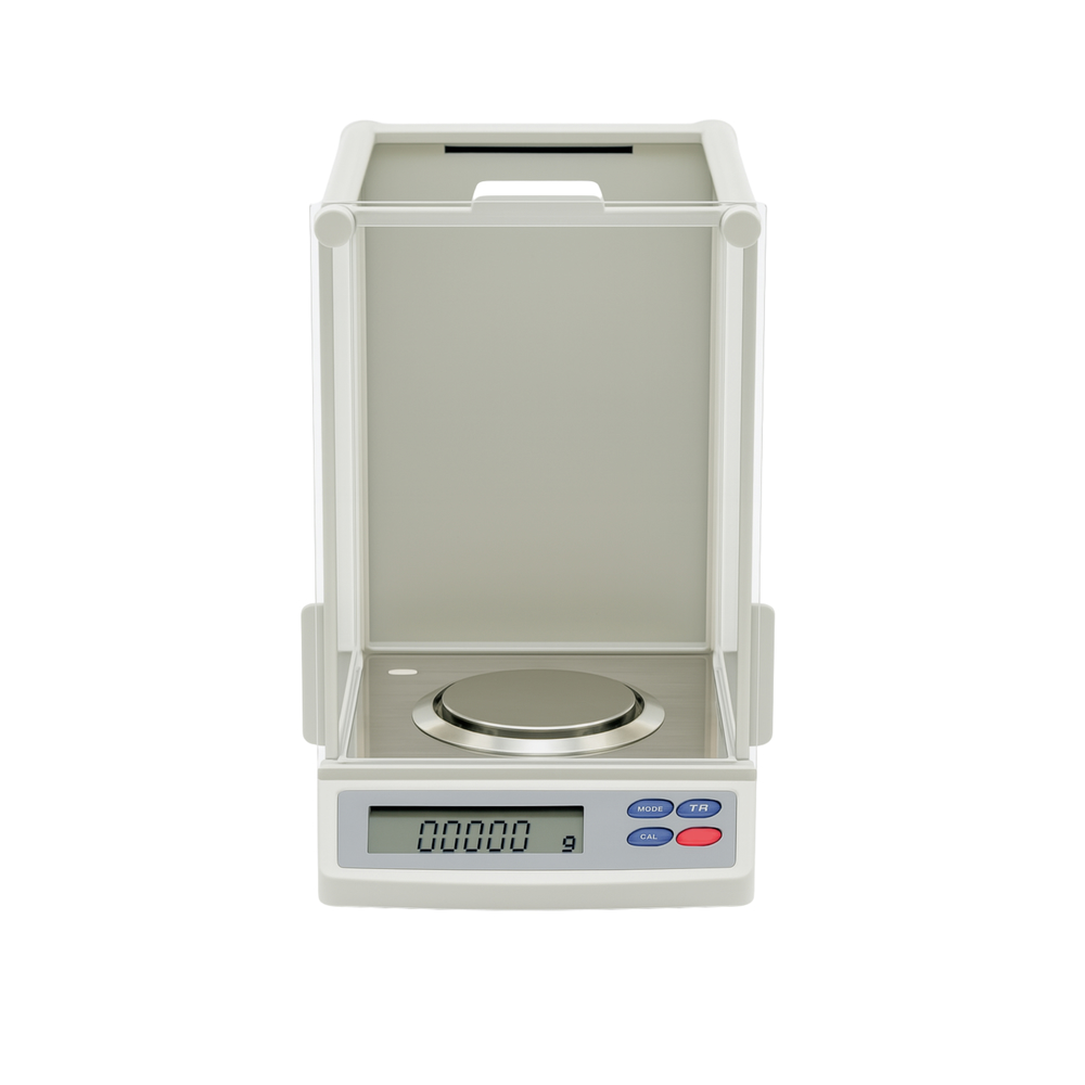 Cerrar la cámara de pesaje para evitar interferencias externas y esperar a que la balanza estabilice la medición.