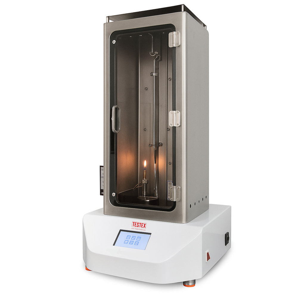 Diseñada para medir la resistencia al fuego de textiles en posición vertical. Cumple con normas como ASTM D6413, 16 CFR Partes 1615/1616, CALIF TB117, CPAI 84 y GB/T 5455. Equipada con un sistema de encendido automático y pantalla táctil, permite programar el tiempo de ignición y registrar automáticamente los tiempos de post-llama y resplandor, facilitando la evaluación precisa de la inflamabilidad de materiales como ropa de dormir infantil, cortinas y textiles industriales.
