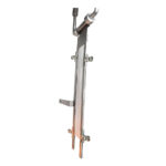 Equipo para evaluar la resistencia al fuego de textiles en posición vertical, utilizado en pruebas de inflamabilidad de ropa infantil, cortinas y materiales industriales.