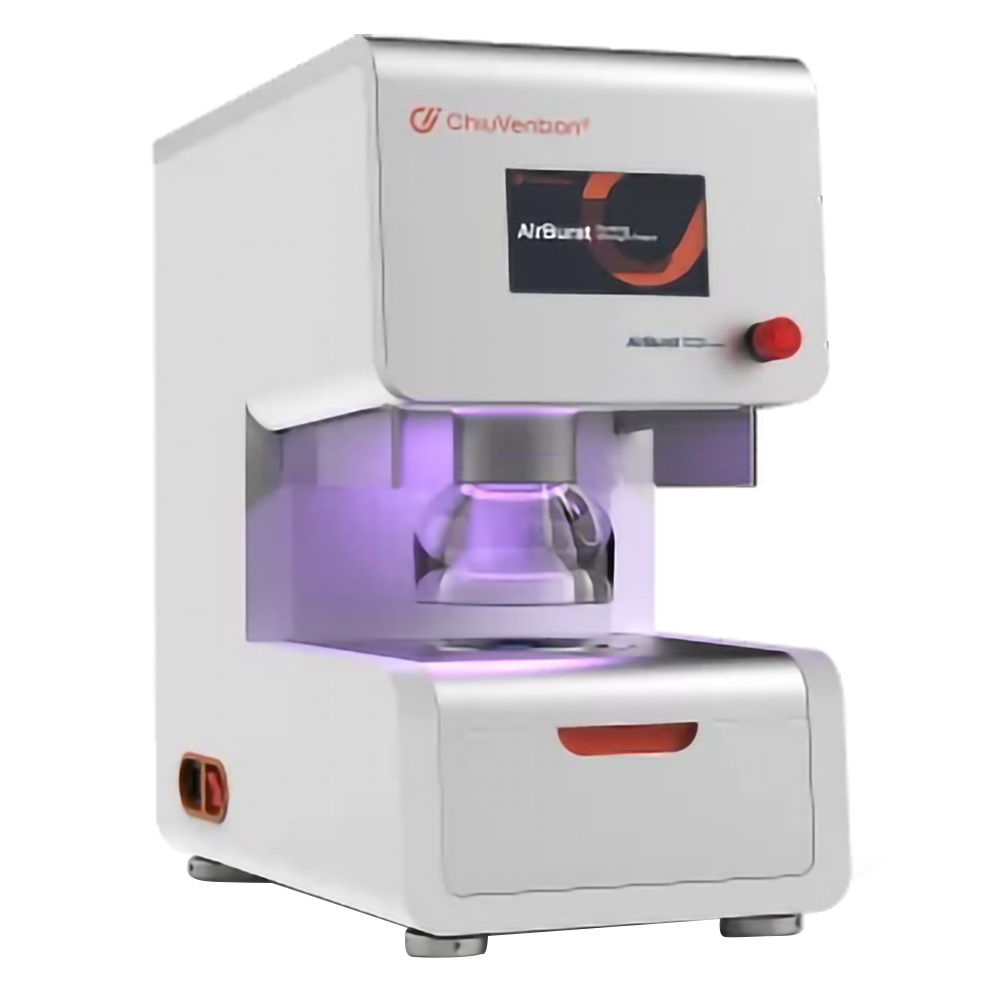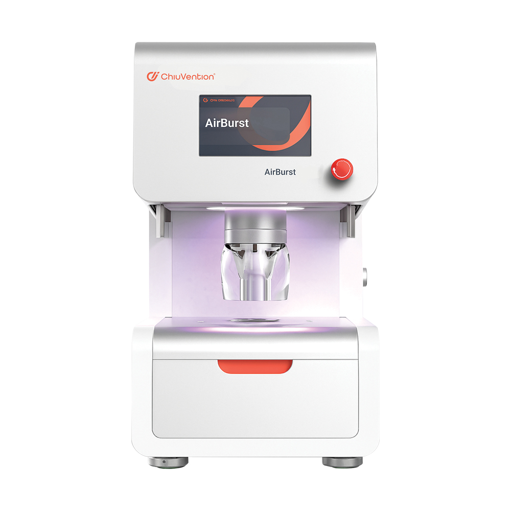 Equipo neumático que evalúa la resistencia al estallido de tejidos, películas y papel mediante presión de aire controlada, con sensores láser de alta precisión.