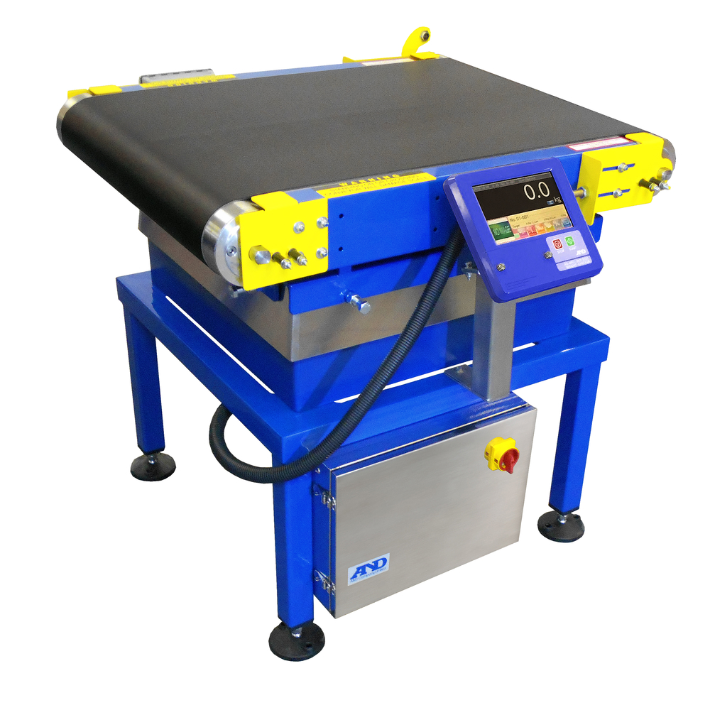 Controlador de peso robusto con capacidad de hasta 6000g y velocidad de 250 piezas por minuto, ideal para la inspección en líneas de producción en la industria alimentaria, farmacéutica y logística.
