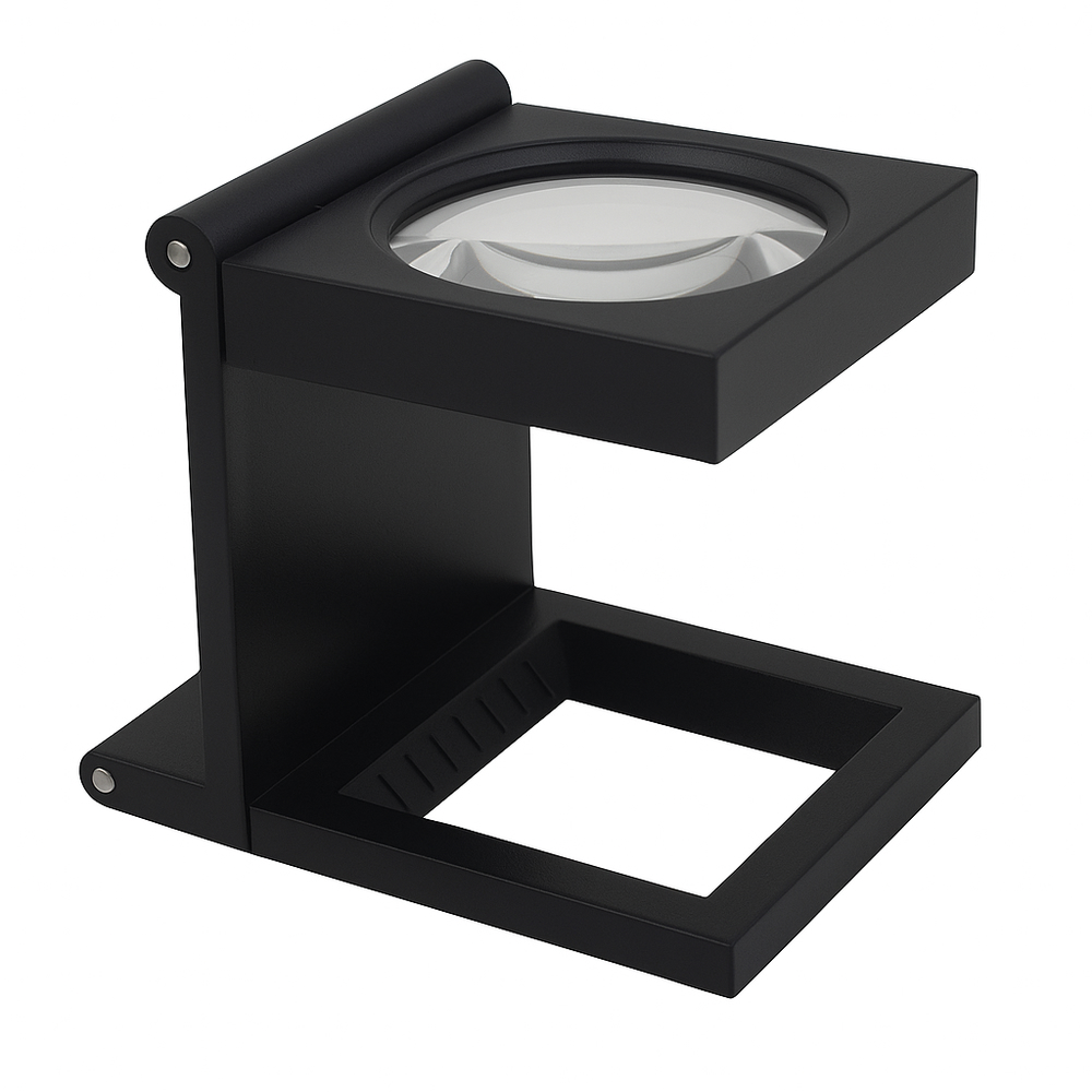 Lupa cuentahilos con lente óptica de 50 mm y aumento de 5X, equipada con sistema de iluminación LED integrado. Fabricada en cuerpo resistente, ofrece observaciones claras y precisas incluso en condiciones de poca luz. Ideal para inspección en impresión, textil, numismática y control de calidad. Incluye estuche protector portátil.