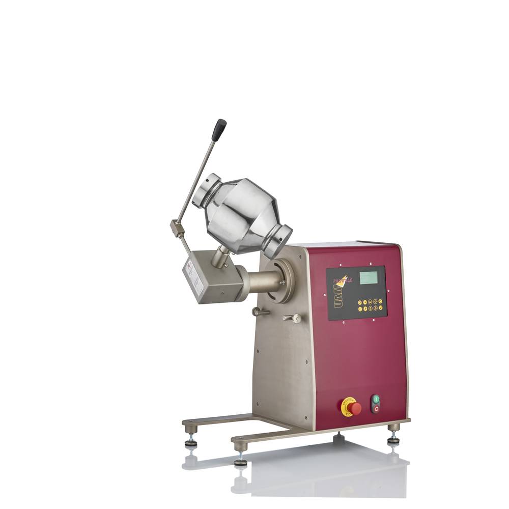 El DCM-6 es un mezclador de doble cono que utiliza el principio de mezcla por volteo radial, adecuado para polvos y gránulos sensibles de flujo libre. Su diseño único permite una mezcla eficiente y rápida incluso con proporciones bajas (hasta 1%), sin requerir deflectores internos. Todas las partes en contacto con el producto cumplen con las normativas GMP y pueden ser esterilizadas según estas normativas.