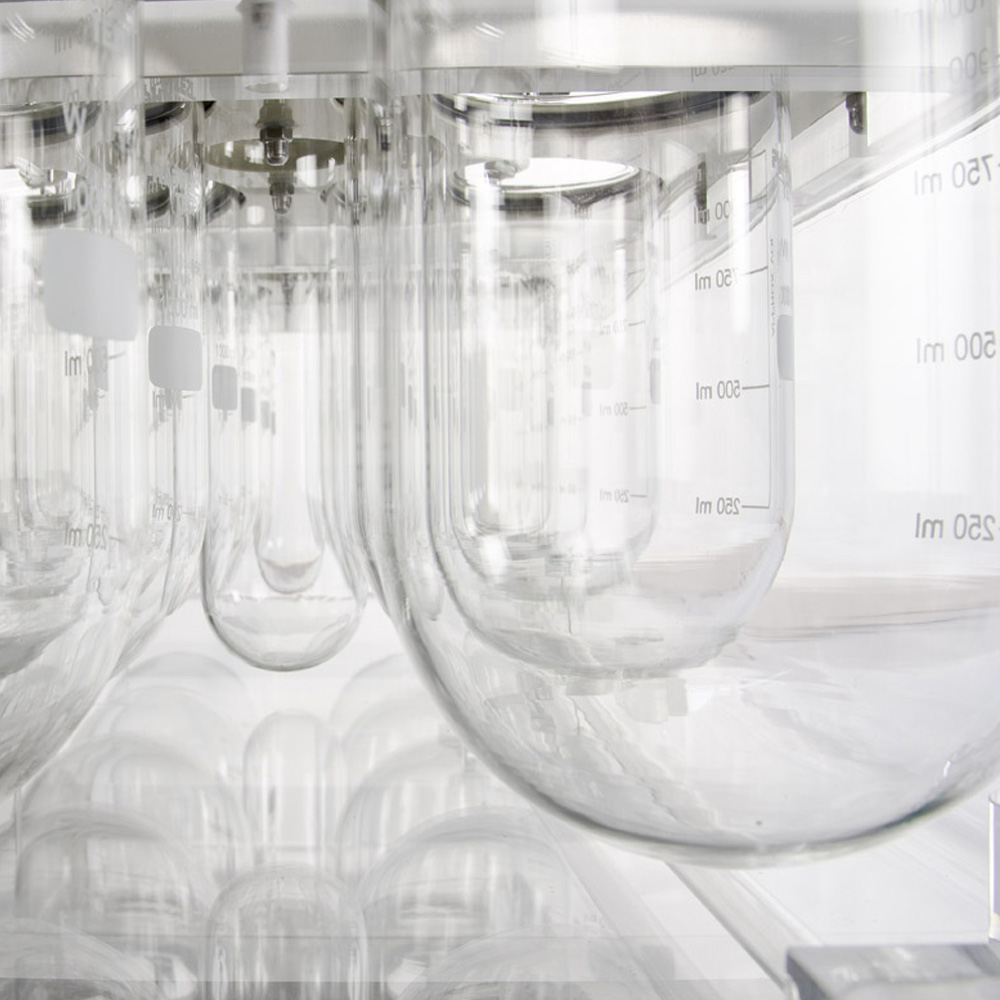 Llenar cada uno de los 6 vasos del baño de disolución PTWS 120D con el medio adecuado según el protocolo de prueba.