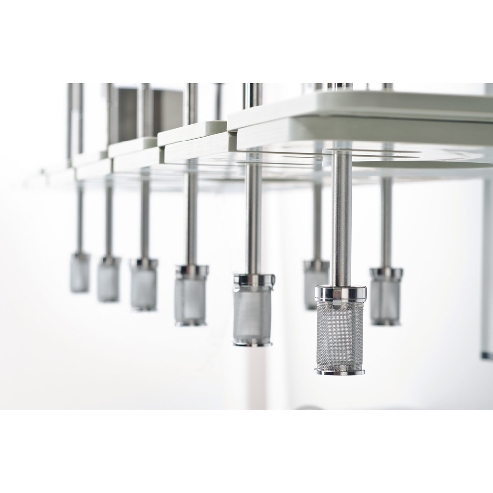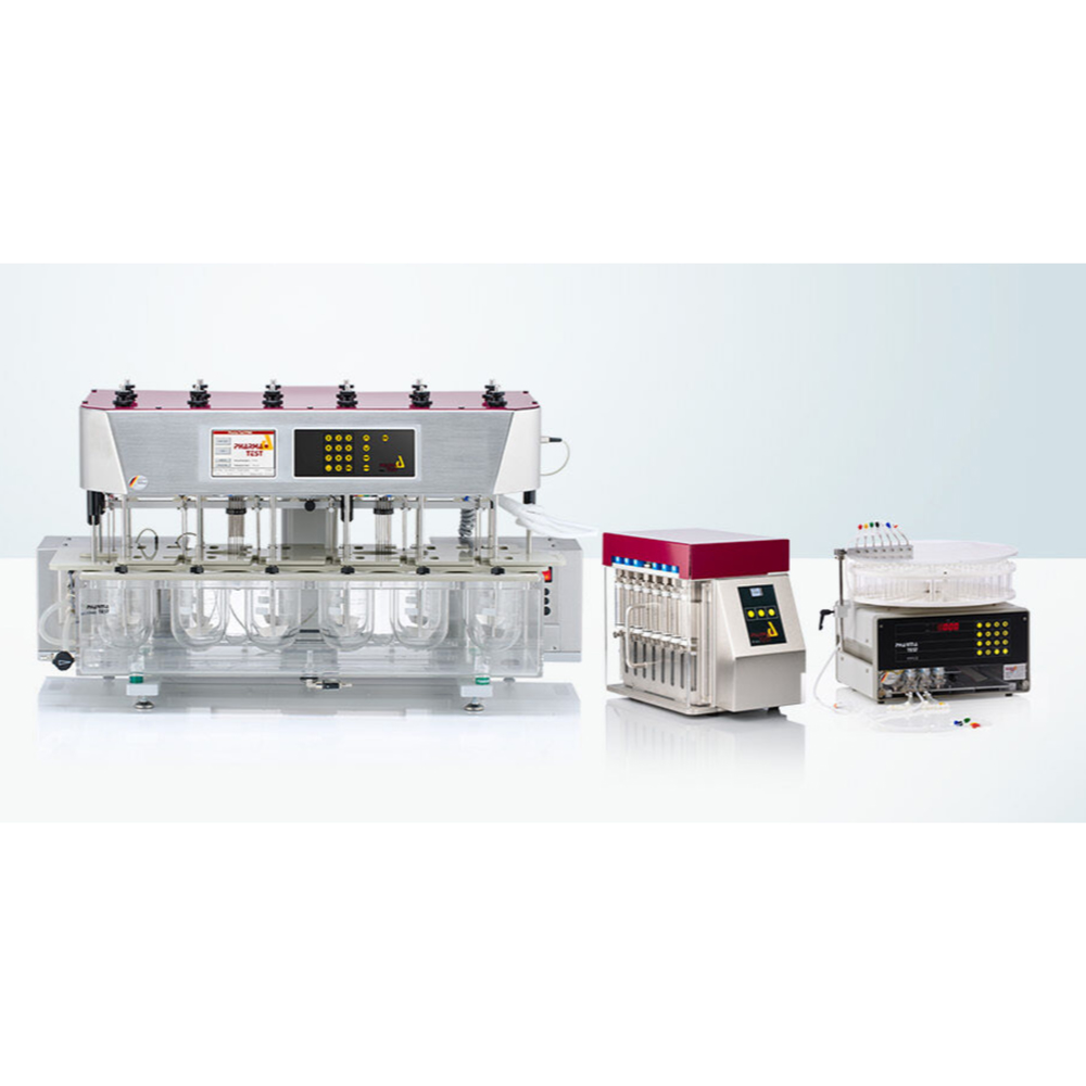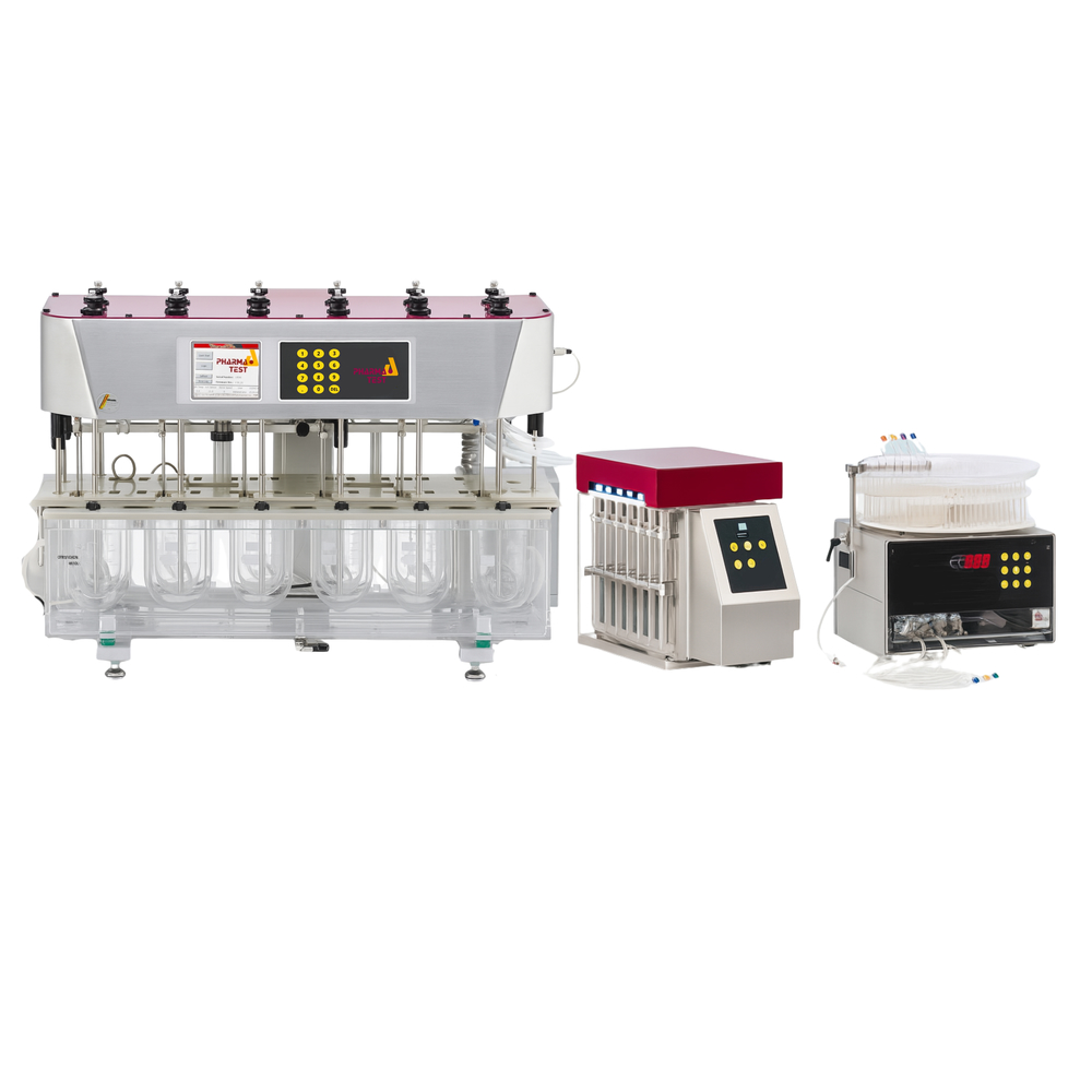 El DFC-620SP es un sistema de prueba de disolución semi-automatizado que consta de un baño de disolución PTWS 620 de 6+2 posiciones con centrado individual de vasos, instalación completa de tuberías en PTFE con sondas de muestreo in situ o sistema de muestreo automático EPE-620, una bomba de jeringa PT-SP8 y un colector de fracciones PTFC-2/8. Este sistema permite el muestreo automático a intervalos preprogramados sin necesidad de software externo.
