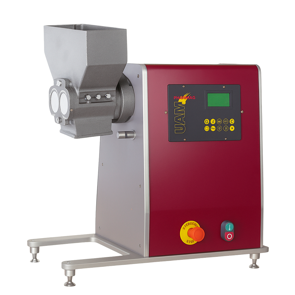 Triturador de rodillos duales que utiliza dos rodillos helicoidales de acero inoxidable para generar alta presión y procesar materiales como comprimidos, tabletas y pellets. Su diseño único ofrece un rendimiento óptimo de trituración y granulación con bajo contenido de polvo. Puede acoplarse directamente al UAM Universal Motor Drive para un ajuste flexible y continuo de la velocidad.