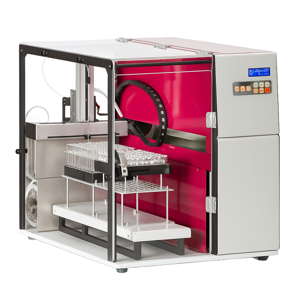 Robot de muestreo de disolución diseñado para transferir y procesar muestras de baños de disolución con 6 a 14 vasos.