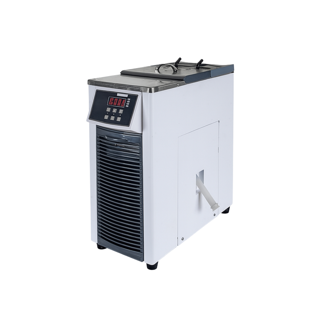 El modelo BK‑RC610 ofrece refrigeración de precisión para equipos de laboratorio, como evaporadores rotatorios, analizadores o baños térmicos. Cuenta con controlador digital PID, compresor hermético y bomba de circulación de doble pala que entrega hasta 10 L/min con un cabezal de 10 m. Volumen interno de 6 L, rango operativo de –5 °C a 20 °C y capacidad de refrigeración de 1 490 W. Utiliza refrigerante ecológico R134a. Incluye control PT100, tanque en acero inoxidable y rangos extendidos (–20 °C a RT) con capacidades 4‑20 L y flujo hasta 40 L/min