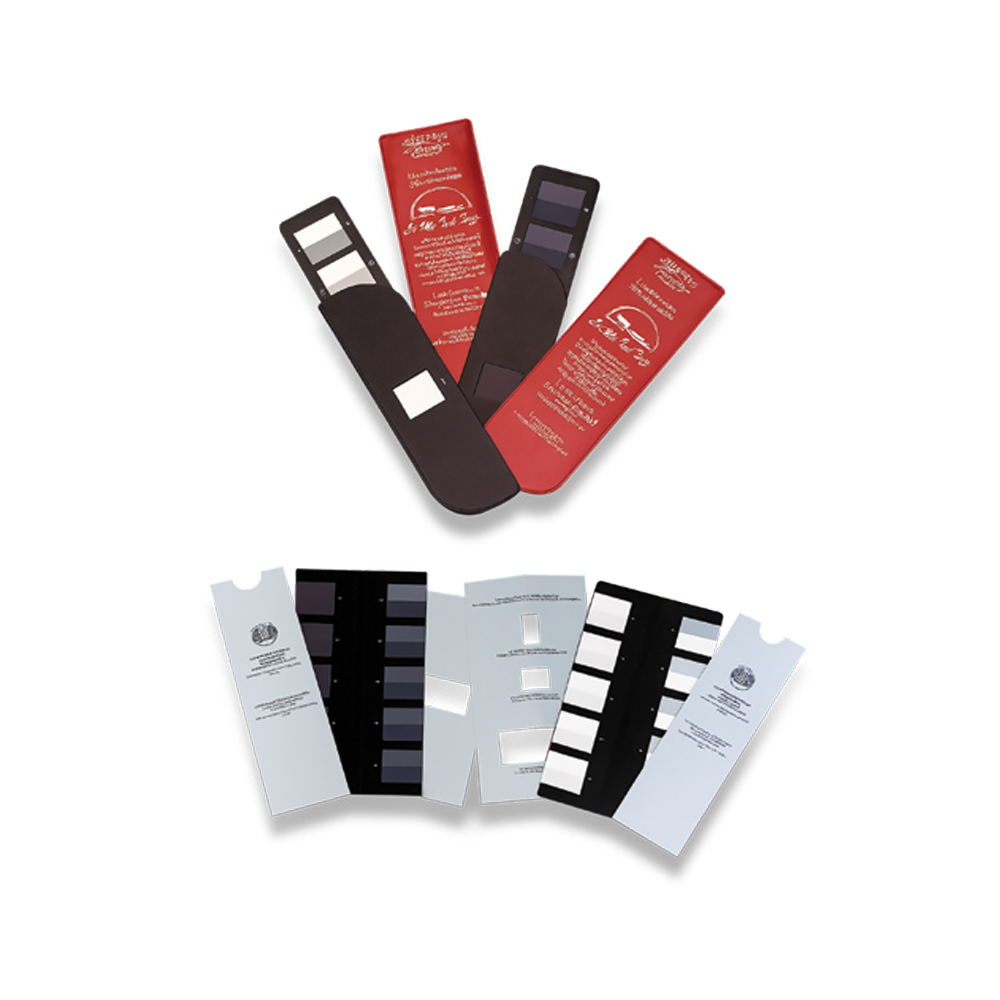 Instrumento esencial para evaluar visualmente la solidez del color en textiles. Disponibles en versiones para cambio de color y manchado, cumplen con normas internacionales como AATCC 8/66/165, ISO 2313 y BS EN 22313. Cada escala presenta gradaciones de 1 a 5 con medios pasos, permitiendo una evaluación precisa y reproducible.