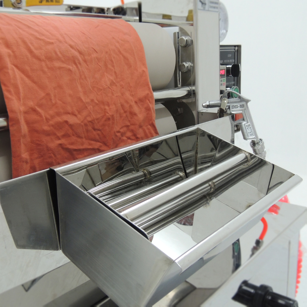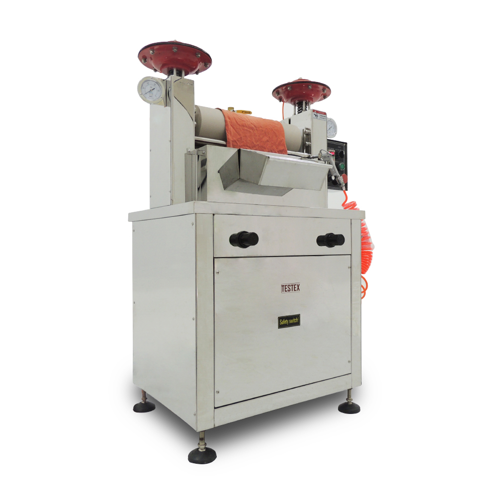 El Lab Padder TD122 de TESTEX es un padder de laboratorio tipo vertical diseñado para procesos de tintura, acabado e impregnación en muestras textiles. Equipado con rodillos de NBR de alta calidad y presión ajustable, asegura una distribución uniforme de líquidos y una presión constante. Su diseño incluye un botón de emergencia y pedal de rodilla para mayor seguridad.