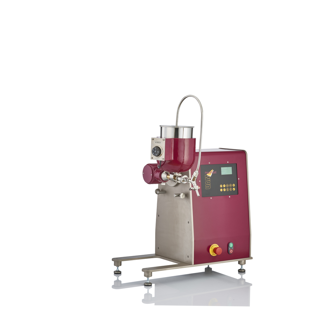 El Homogeneizador HMG funciona mediante un flujo turbulento generado por una bomba de pistón que pasa a través de un canal con estructura predefinida, creando un efecto de mezcla estática que permite la homogeneización de líquidos inmiscibles. Es adecuado para procesos por lotes y semiconductivos, con capacidad de hasta 1 litro y un rango de calentamiento eléctrico de hasta 40°C.