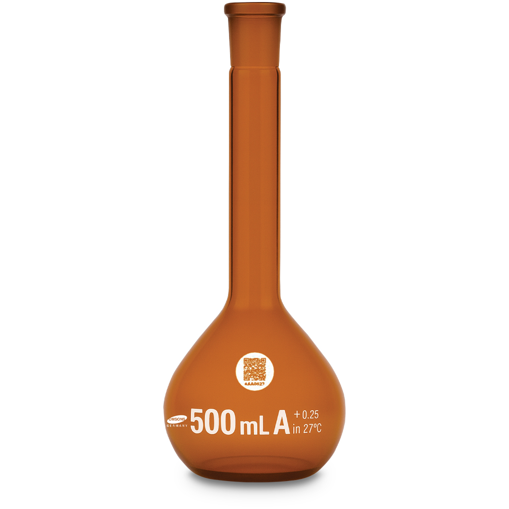 Los matraces volumétricos ISI Mark Ámbar Clase A están diseñados para realizar mediciones exactas de volumen en entornos donde se manejan sustancias fotosensibles. Fabricados con vidrio borosilicato teñido de color ámbar, estos matraces ofrecen excelente resistencia térmica y química, además de protección efectiva contra la radiación UV. Están certificados bajo la norma IS:1997 como Clase A, lo que garantiza máxima exactitud y fiabilidad en procesos analíticos. Cuentan con una única marca de aforo grabada y un tapón esmerilado que asegura un cierre hermético. Aptos para esterilización en autoclave, son ideales para laboratorios farmacéuticos, clínicos, industriales y de investigación donde se requiera control preciso y estabilidad del contenido frente a la luz.