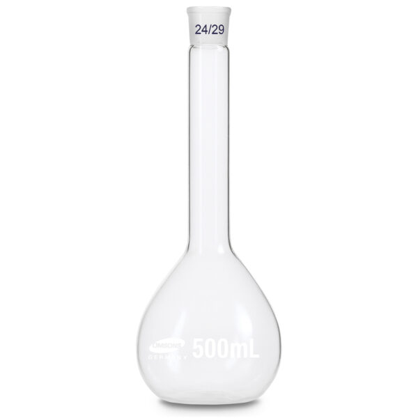 Matraz Erlenmeyer ámbar con casquillo esmerilado estándar (ej. 24/29). Compatible con adaptadores de destilación o filtración. Alta pureza óptica y estabilidad térmica. Vidrio borosilicato.