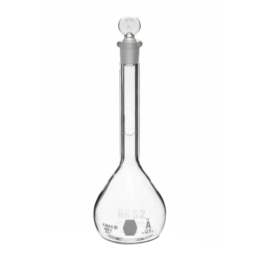 Matraz volumétrico de 50 ml, Clase A, fabricado en vidrio borosilicato de alta calidad, resistente a agentes químicos y variaciones térmicas. Diseñado con un único aforo calibrado para garantizar mediciones volumétricas exactas. Incluye tapón de polietileno que asegura un cierre hermético y certificado por lote que garantiza la trazabilidad y precisión de la calibración. Es un instrumento esencial para la preparación de soluciones estándar y análisis cuantitativos en laboratorios de química, biología e investigación.
