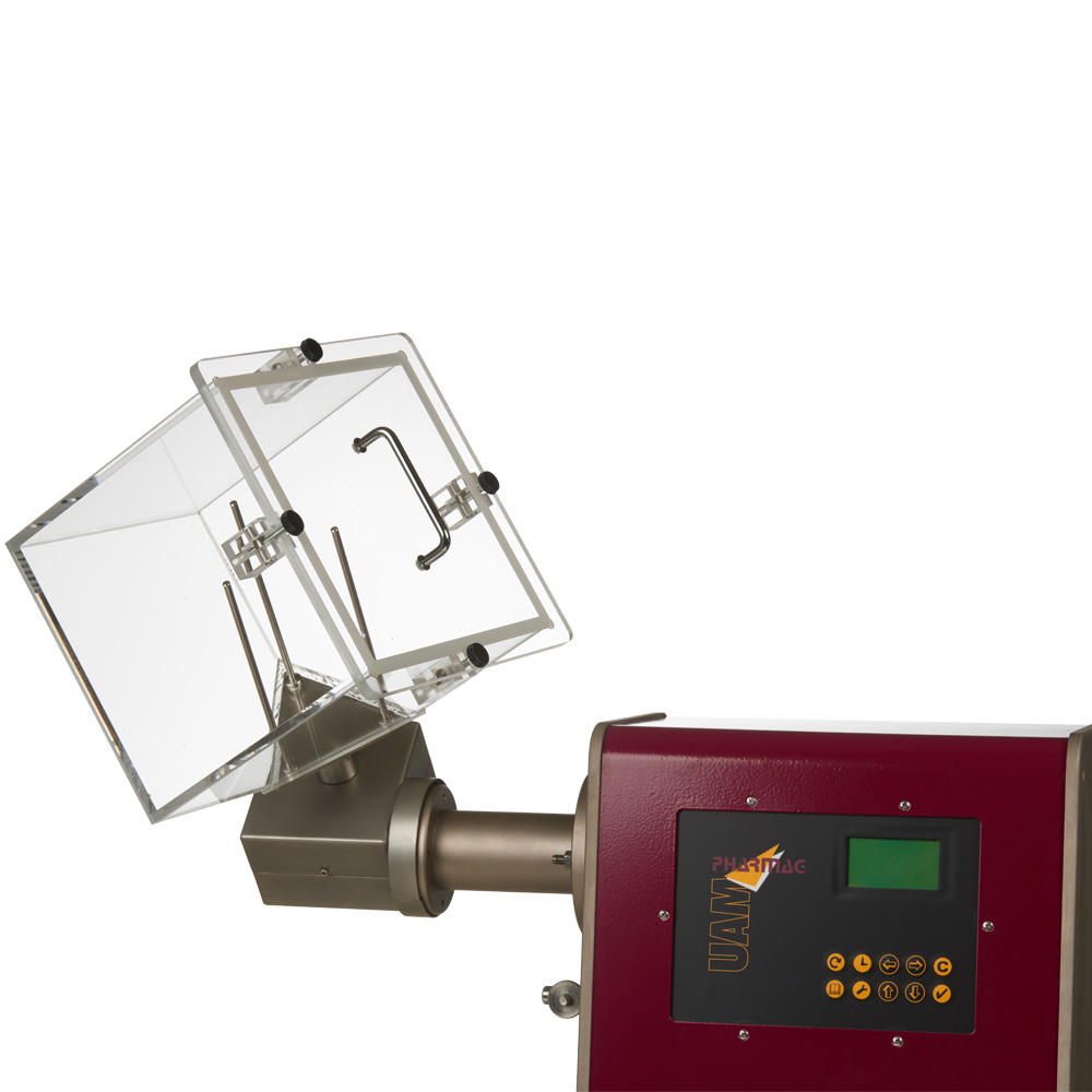 Material:Cubo de plexiglás transparente (PMMA, acrílico) con ejes internos de acero inoxidable, todos conformes a las normativas GMP.