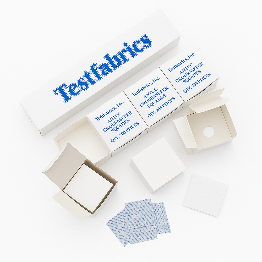 Este papel abrasivo de grano 320A está diseñado específicamente para su uso en máquinas Crockmeter, utilizadas en pruebas de solidez del color al frote. Su función principal es acondicionar y mantener la superficie de contacto del Crockmeter, asegurando que las pruebas de transferencia de color sean precisas y consistentes. Al preparar adecuadamente la superficie de fricción, se minimizan las variaciones en los resultados de las pruebas, lo que es esencial para cumplir con los estándares internacionales de calidad. Este papel abrasivo es compatible con métodos de prueba reconocidos, como AATCC TM 8 y ISO 105-X12, lo que lo hace indispensable en laboratorios textiles y de control de calidad que buscan mantener la integridad y reproducibilidad de sus ensayos. Su tamaño estándar facilita su adaptación a diversas máquinas Crockmeter, y su calidad garantiza una larga duración y rendimiento constante.