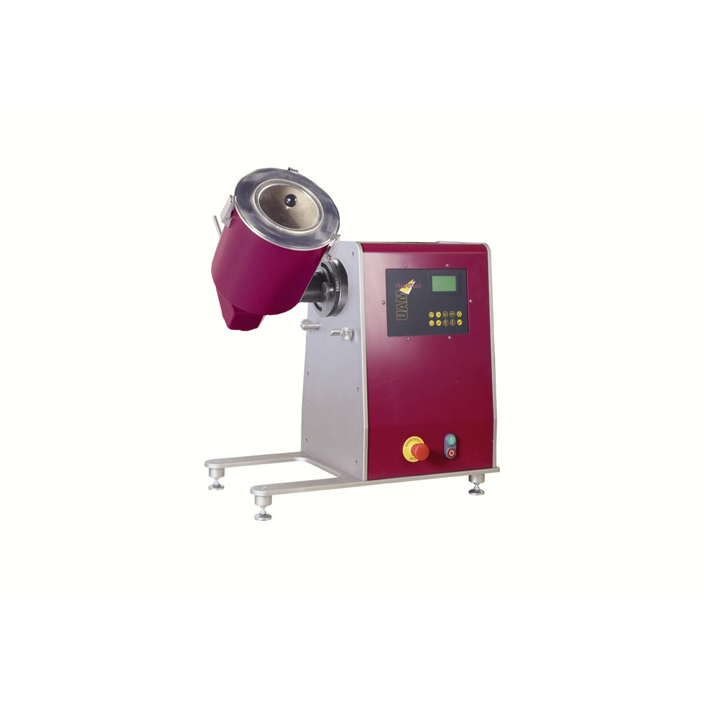 El Tambor de Pulido PD está diseñado para el pulido eficiente de tabletas recubiertas, pellets y gránulos. Su interior forrado de fieltro, incluyendo las paredes y el fondo, asegura un pulido uniforme. La tapa de plexiglás transparente permite la observación del proceso. Se conecta al UAM Universal Motor Drive a través del UGD Universal Gear Drive, permitiendo ajustar la velocidad y el ángulo de operación según las necesidades del proceso.