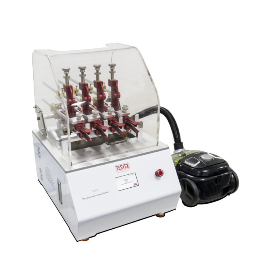 El Probador de Abrasión Wyzenbeek TF212 es un equipo utilizado para determinar la resistencia a la abrasión de tejidos, especialmente en las industrias automotriz y de muebles. Durante la prueba, las muestras se fijan sobre un abrasivo estándar o una malla de alambre y se someten a un movimiento oscilatorio sobre una superficie curva durante un período definido. El dispositivo cuenta con cuatro cabezales de abrasión y un contador digital electrónico para controlar el número de ciclos, permitiendo pruebas simultáneas y eficientes. Cumple con las normas ASTM D4157 y ASTM D3597, asegurando resultados precisos y confiables.