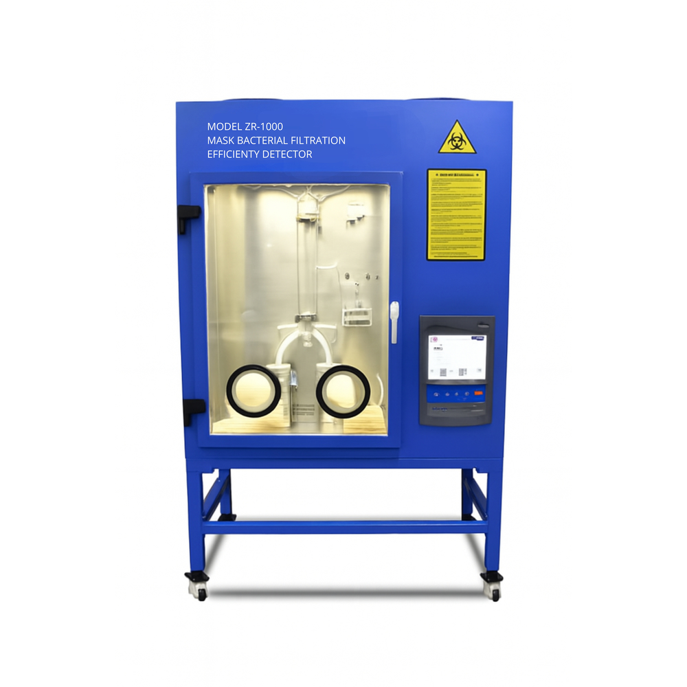 Equipo diseñado para evaluar la eficiencia de filtración bacteriana (BFE) en mascarillas médicas y quirúrgicas, cumpliendo con estándares internacionales.