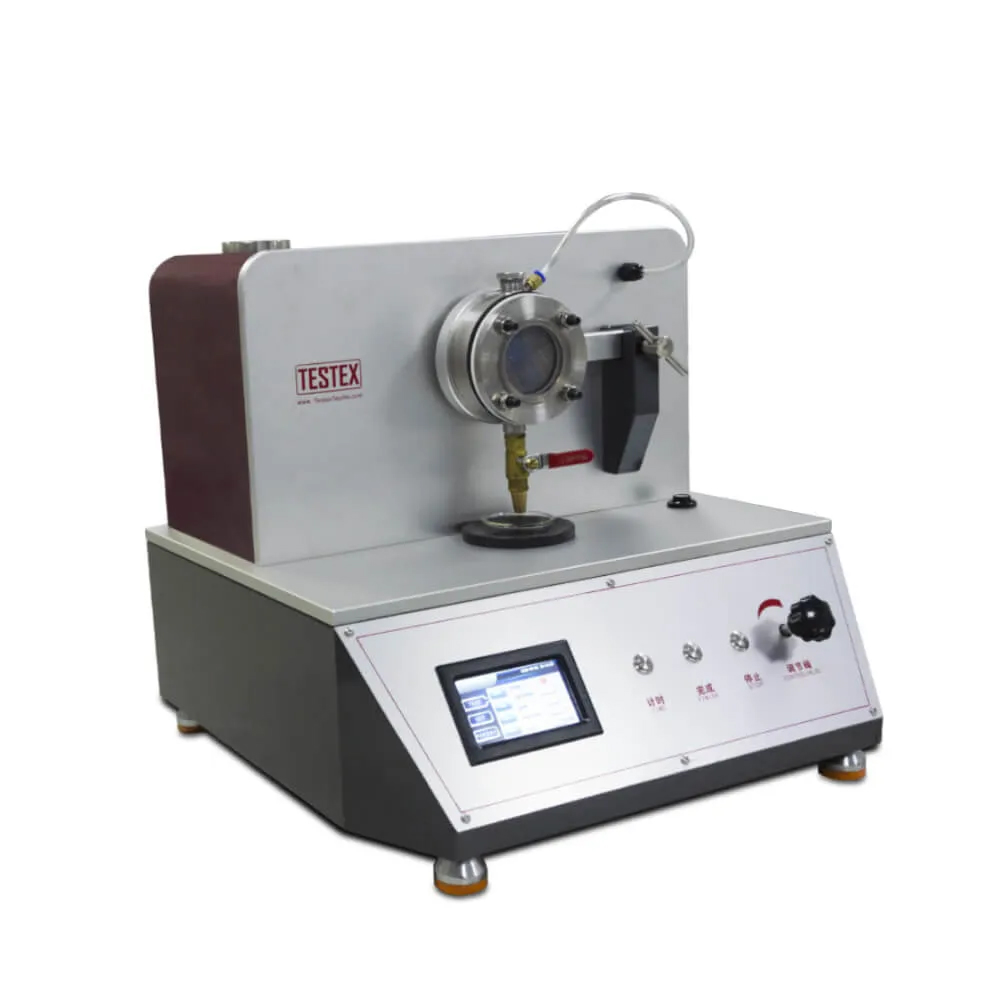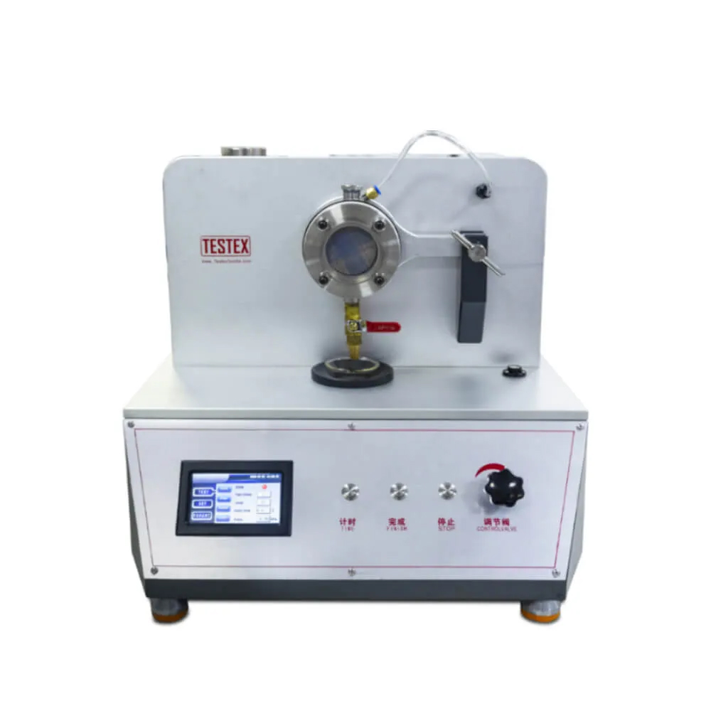 El Probador de Penetración de Sangre Sintética TN140 de TESTEX simula la exposición de mascarillas y prendas médicas a salpicaduras de sangre bajo presión. Proyecta un volumen fijo de sangre sintética sobre la muestra desde una distancia y velocidad controladas, replicando condiciones reales de uso clínico. Cumple con normas internacionales como ASTM F1670, ASTM F903 (Métodos A/B/C).