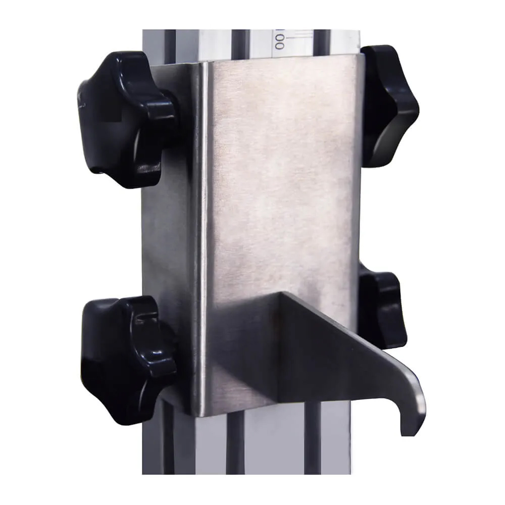 Coloque el peso de tensión seleccionado (5 lb o 10 lb) en la percha inferior para aplicar la carga especificada.