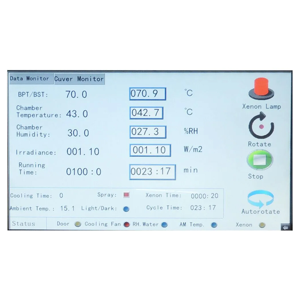 Cámara de prueba avanzada que simula la exposición a la luz solar y condiciones climáticas para evaluar la solidez del color y resistencia al envejecimiento en textiles, plásticos, cuero y otros materiales. Equipada con una lámpara de xenón de 2500W, controla irradiancia, temperatura y humedad con precisión. Cumple con normas internacionales como ISO 105-B02, AATCC 16 y GB/T 8427.