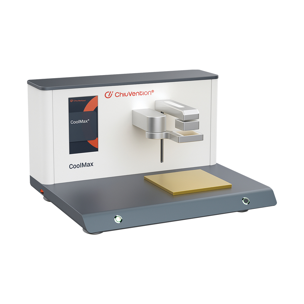 Equipo especializado para medir la sensación de frescura instantánea al contacto con textiles, simulando el toque humano mediante sensores de alta precisión.