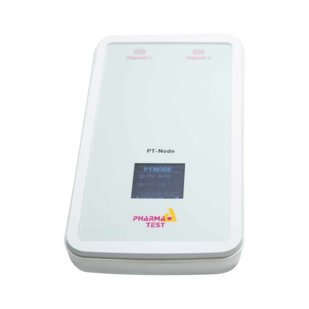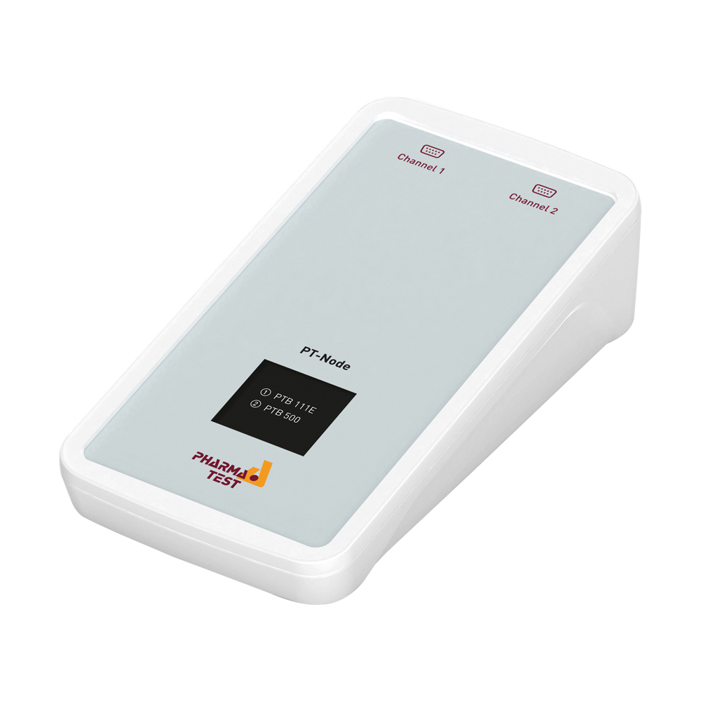 El PT-Node es un adaptador que permite la conexión simultánea de hasta dos instrumentos de Pharma Test a una red, ya sea mediante LAN cableada o Wi-Fi. Facilita la impresión de resultados de pruebas a través de navegadores web en impresoras locales o de red y permite la transferencia de datos a sistemas externos. Incluye una pantalla OLED que muestra el estado de la conexión y la dirección IP.