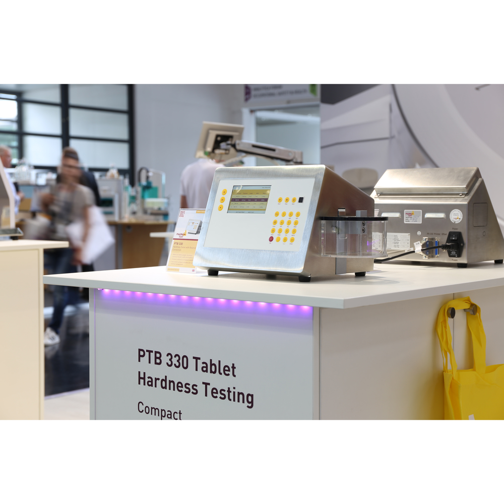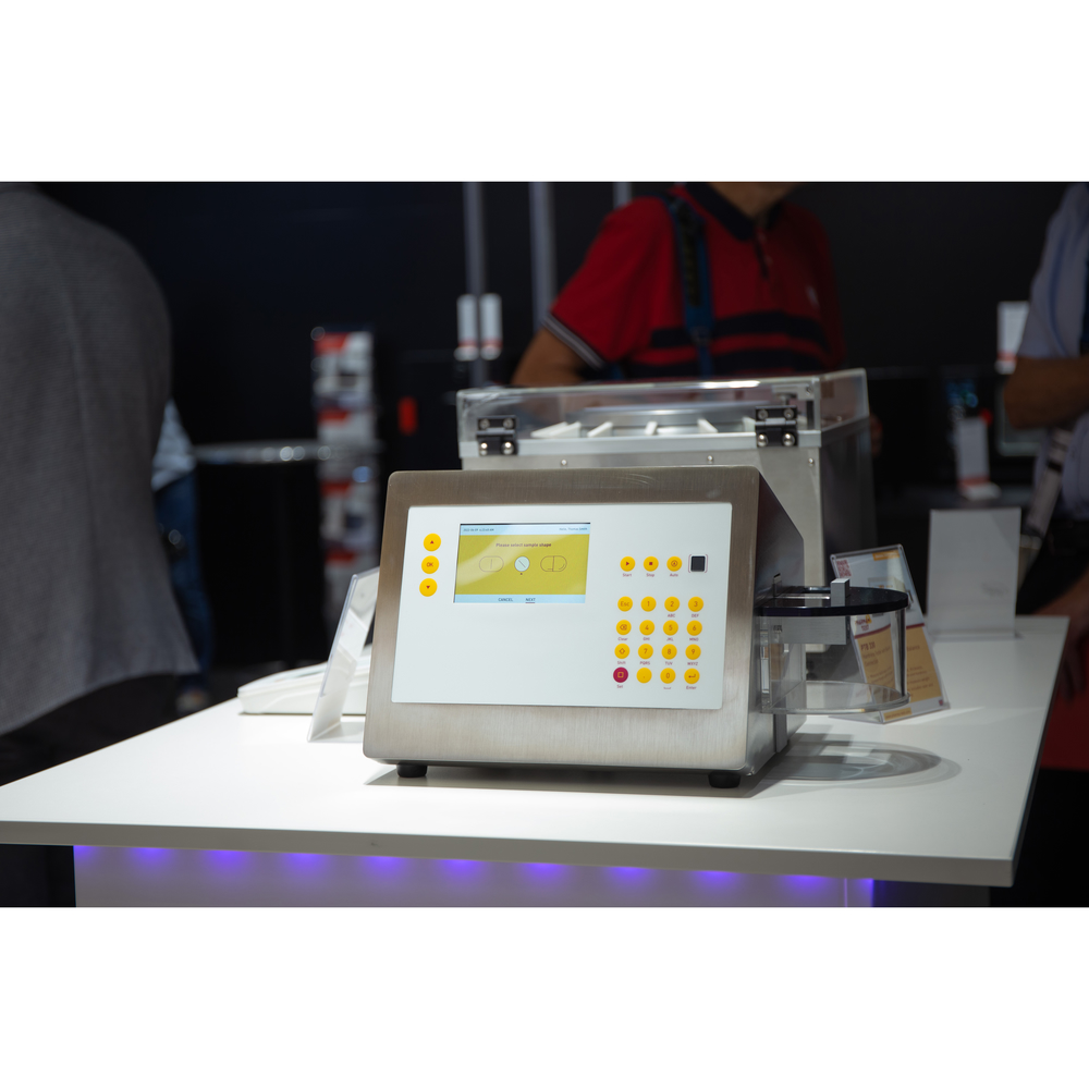 El PTB 330 es un instrumento de prueba de tabletas que mide cinco parámetros: dureza, diámetro (o longitud), grosor, ancho y peso (con balanza conectada). Cumple con las farmacopeas EP <2.9.8> y USP <1217>. Incluye sensor de huella digital para inicio de sesión seguro y pantalla LCD a color retroiluminada para navegación fácil.