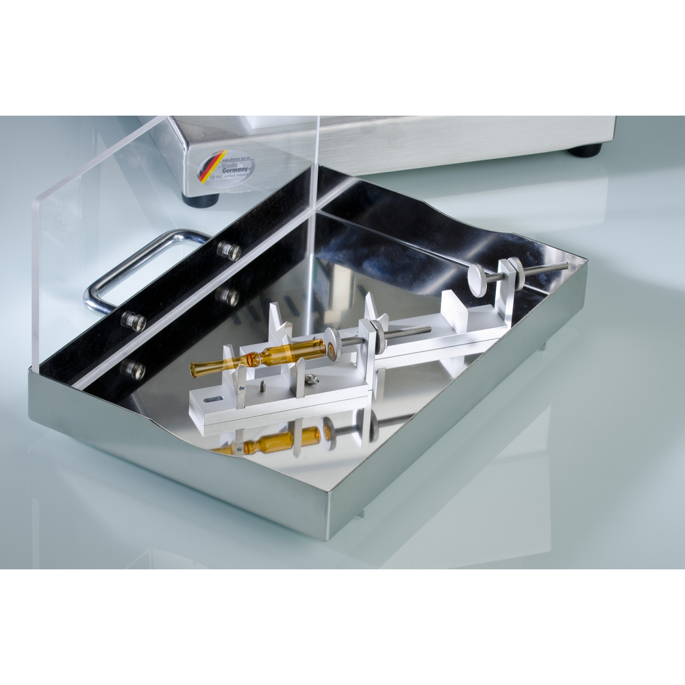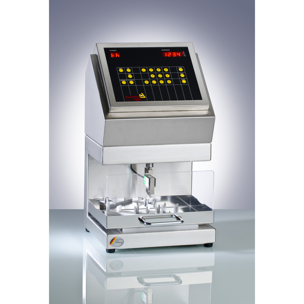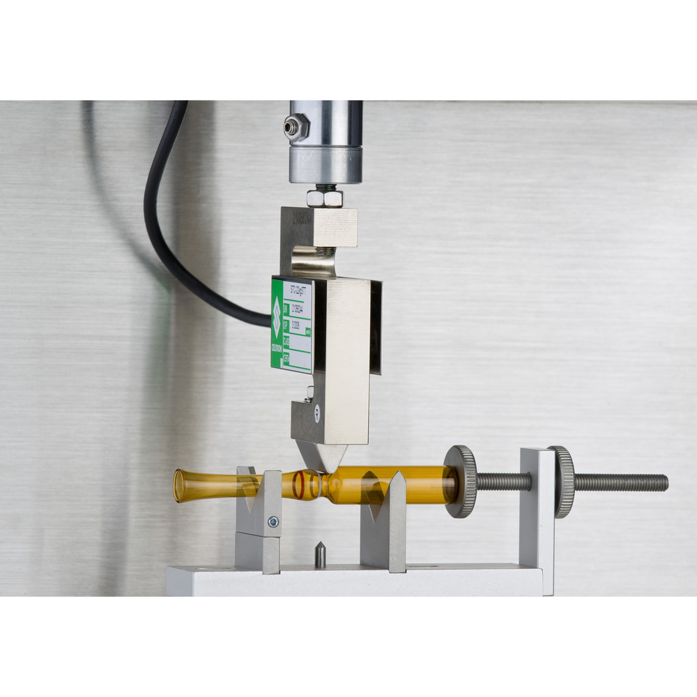 El PTBA 211E es un tester de resistencia al quiebre de ampolletas diseñado para medir la fuerza necesaria para romper ampolletas vacías de 1 a 30 ml, asegurando su calidad antes del proceso de llenado. Cumple con la norma DIN EN ISO 9187-1/2:2010. El instrumento utiliza una mordaza que se mueve mediante un motor paso a paso hacia el cuello de la ampolleta, aplicando una fuerza lineal hasta que la muestra se rompe. La fuerza máxima se muestra en pantalla y se puede imprimir para documentación