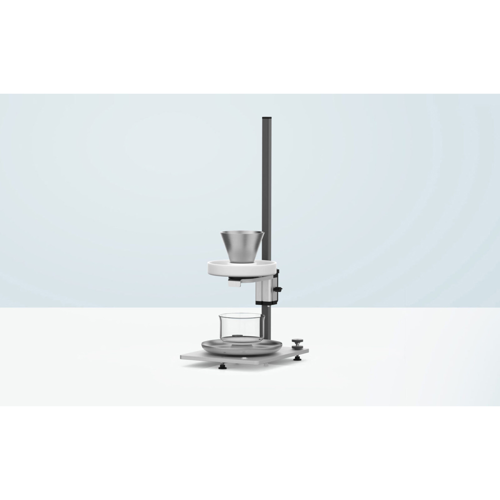 Ajusta la altura del embudo y del agitador según sea necesario para diferentes pruebas, utilizando los perfiles deslizantes que se pueden bloquear en posición sin necesidad de herramientas.