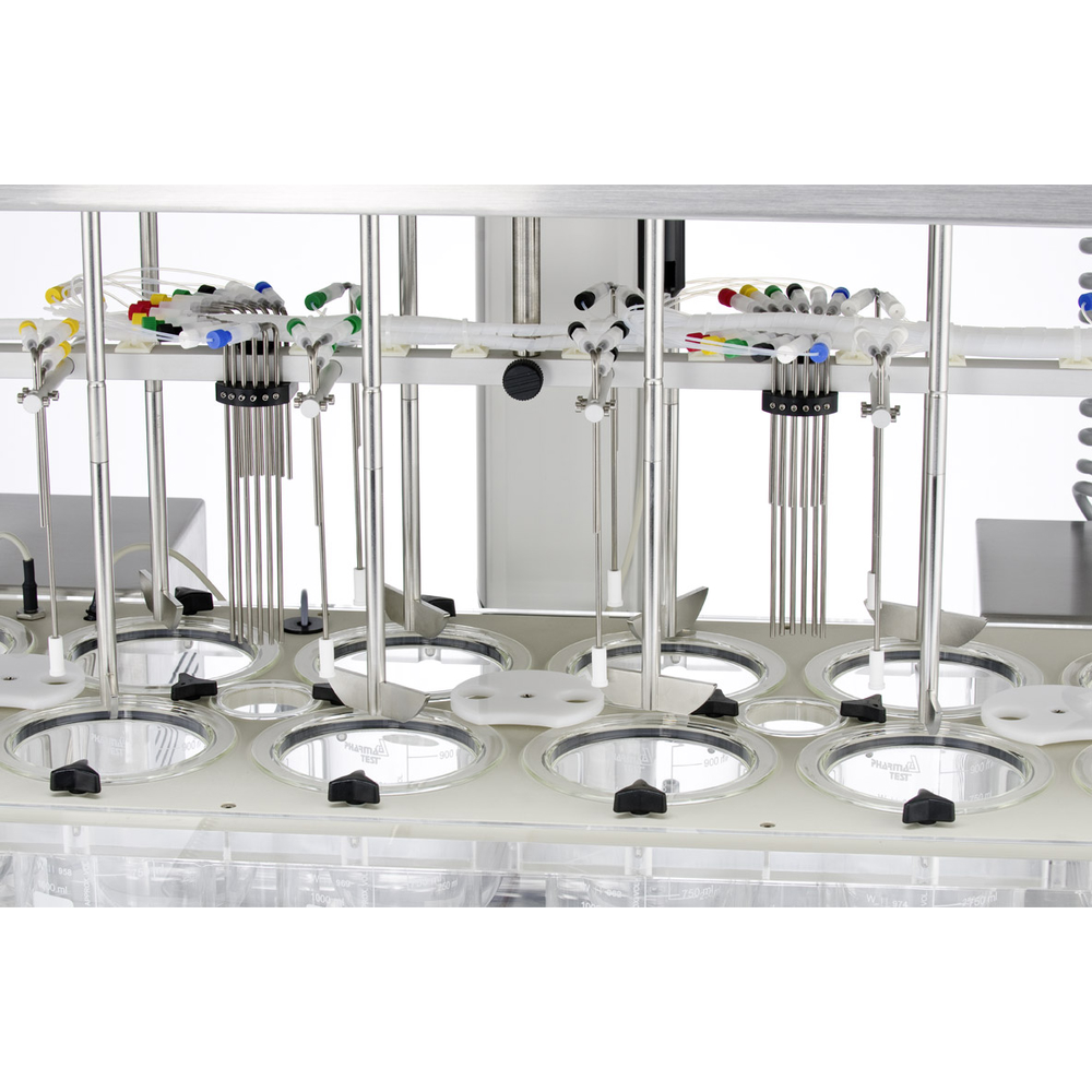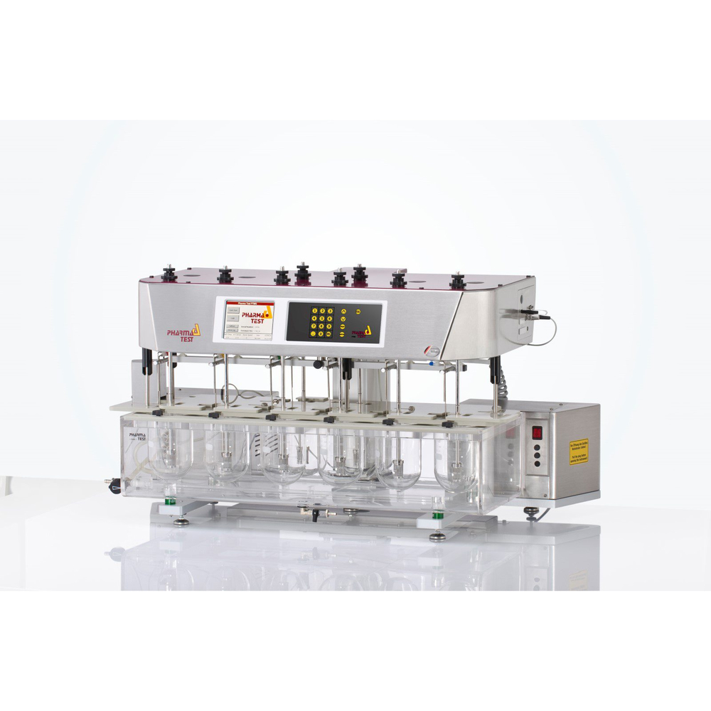 El PTWS 620 es un instrumento de disolución con 6 estaciones de prueba y 2 adicionales, conforme a USP <711/724>, EP <2.9.3/4>, DAB/BP y Farmacopea Japonesa <15>. Ofrece control táctil, calentamiento rápido, cabezal elevable motorizado y sellos de baja evaporación para cumplir con ensayos exigentes y automatización eficiente.