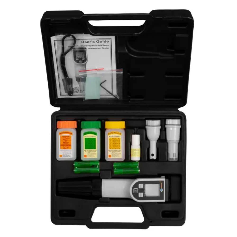 Instrumento de medición compacto y versátil diseñado para evaluar parámetros clave en soluciones acuosas. Este dispositivo permite medir pH en un rango de -2 a 16 pH con una resolución de 0,01 pH, conductividad desde 0 hasta 20 mS/cm, sólidos disueltos totales (TDS) hasta 13 ppt, salinidad hasta 12 ppt y temperatura de 0 a 90 °C. Además, ofrece la opción de medir potencial Redox (ORP) en un rango de ±1000 mV. Equipado con compensación automática de temperatura y calibración de pH en 3 puntos, garantiza mediciones precisas incluso en condiciones variables. Su pantalla LCD facilita la lectura de los valores medidos. Los electrodos son intercambiables, lo que permite una fácil sustitución y mantenimiento.