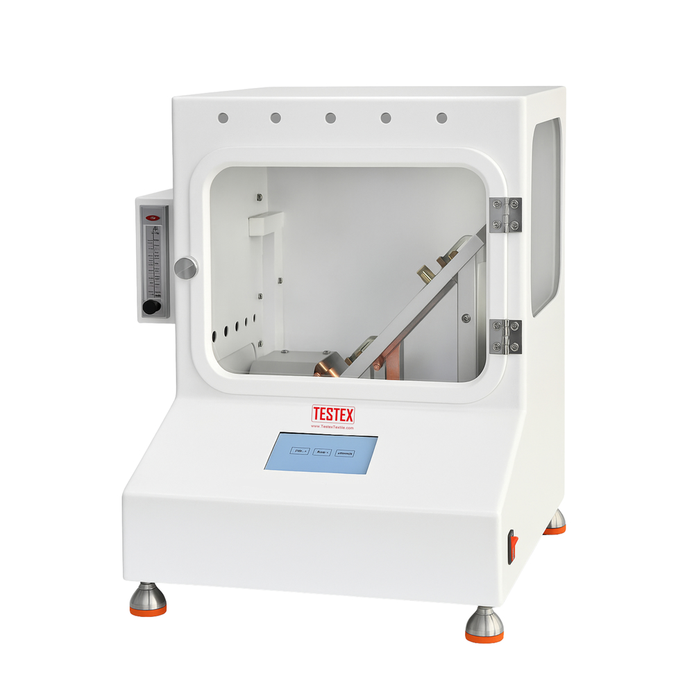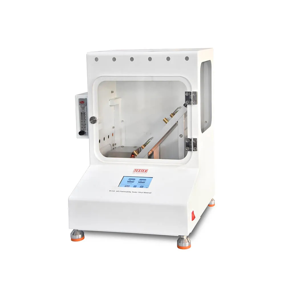 El Probador de Inflamabilidad SPI TF318 de TESTEX está diseñado para determinar las propiedades de ignición de películas plásticas de vinilo, conforme a la normativa CFR 16 Parte 1611 de la Ley de Telas Inflamables de EE. UU. El equipo cuenta con un dispositivo de bloqueo de rosca avanzado y un soporte para muestras que reduce el tiempo de operación en un 80% en comparación con diseños de otros proveedores. Está equipado con un sensor fotoeléctrico que registra automáticamente el tiempo de combustión con una precisión de hasta 0.01 segundos, sin daños y con una vida útil de 5 años o más. Utiliza una llama de aguja #22, ubicada a 9/16 pulgadas de la muestra, con longitud de llama ajustable mediante válvula de flujo. La distancia de medición de la combustión es de 6 pulgadas.