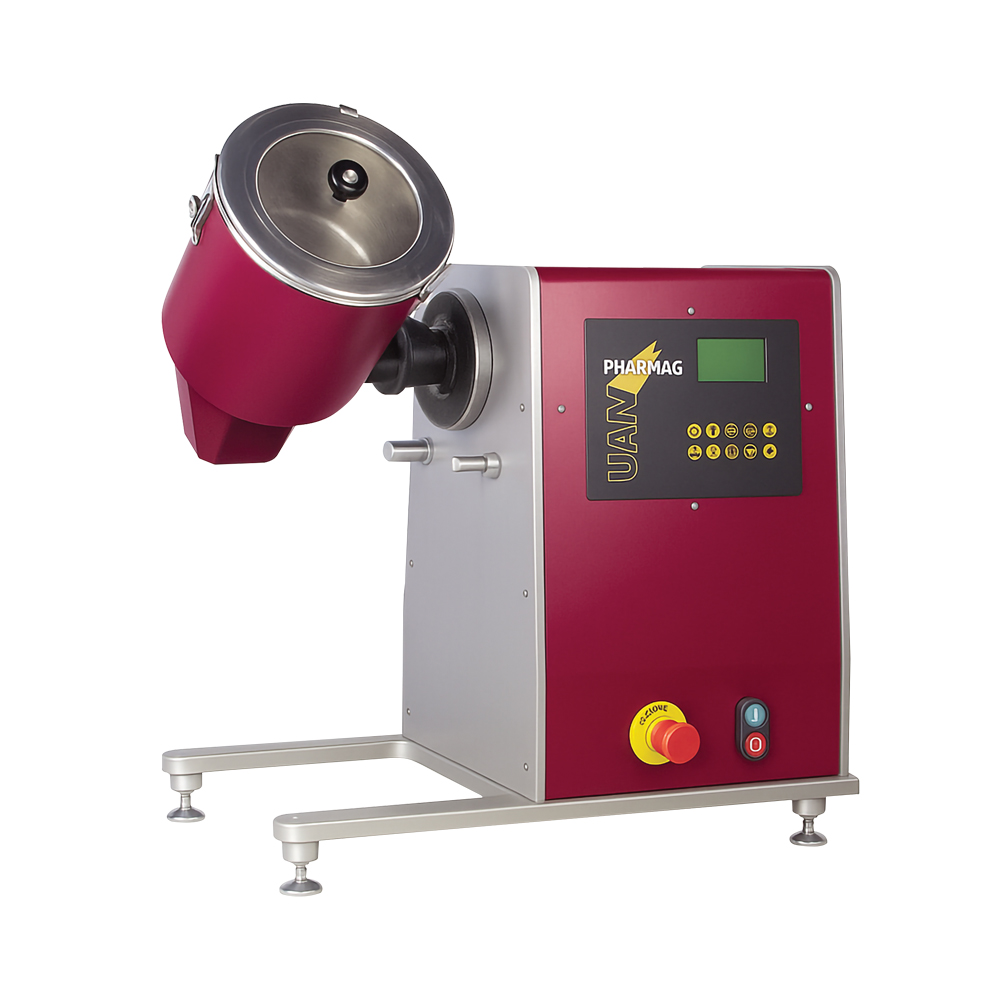 El Tambor de Pulido está diseñado para el pulido eficiente de tabletas recubiertas, pellets y gránulos. Su interior forrado de fieltro, incluyendo las paredes y el fondo, asegura un pulido uniforme. La tapa de plexiglás transparente permite la observación del proceso. Se conecta al UAM Universal Motor Drive a través del UGD Universal Gear Drive, permitiendo ajustar la velocidad y el ángulo de operación según las necesidades del proceso.