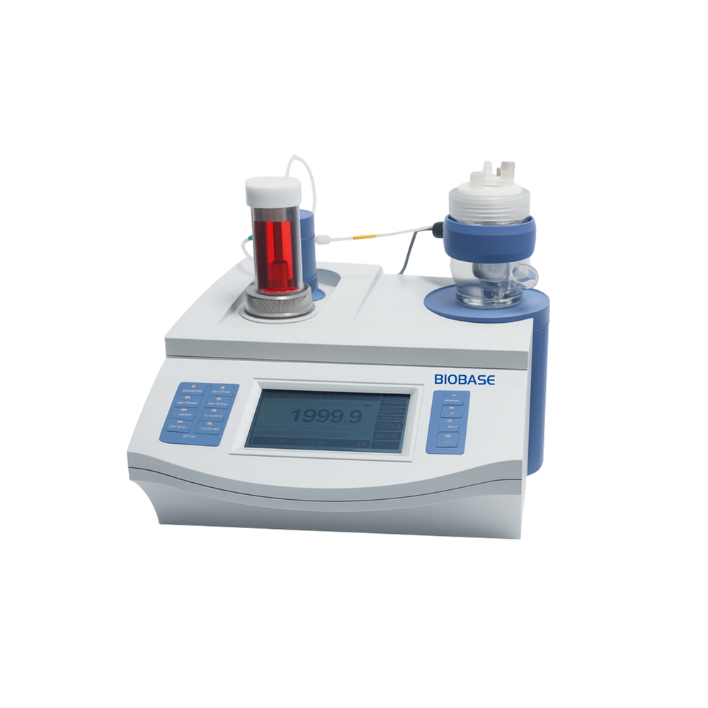 Este titulador automático realiza titulación volumétrica Karl Fischer para determinar contenido de agua con alta precisión en muestras líquidas o sólidas disueltas. Soporta modos KF o detección de título, incluye pantalla LCD, purga y mezcla automática de reactivos, compensación automática de deriva, almacenamiento de hasta 200 datos compatibles con GLP y exportación por RS‑232 / USB a impresora o PC. Permite reinicio a configuración de fábrica de forma automática para evitar errores operativos.